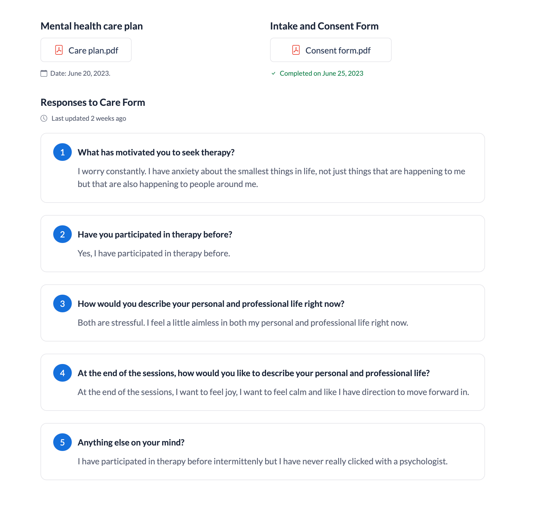 Centralize GP mental health care plans, personalized care forms, and client histories for a less overwhelming