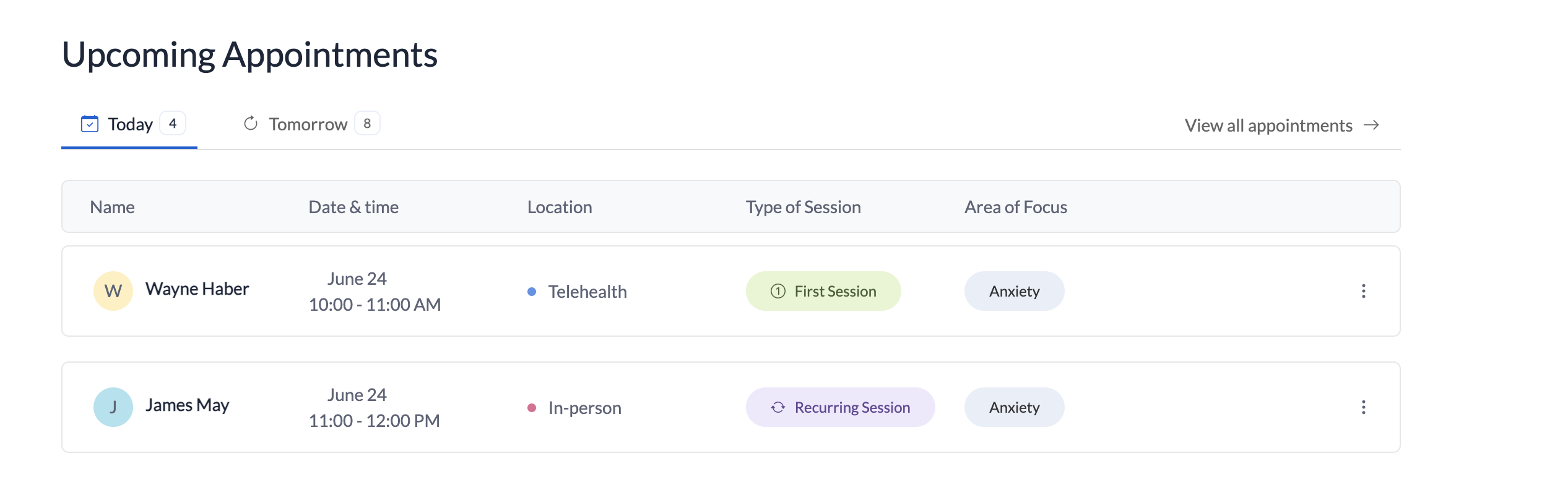 When you add a client, they’ll automatically receive free access to their own dedicated dashboard. This allows them to seamlessly manage appointments, join Telehealth sessions, and access their care form and intake forms—all in one place.